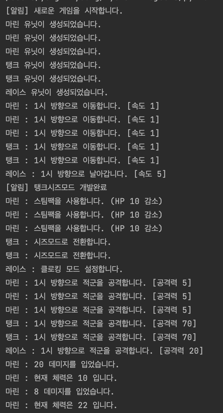 print("{0} : 체력이 부족하여 스팀팩을 사용할 수 없습니다.".format(self.name))